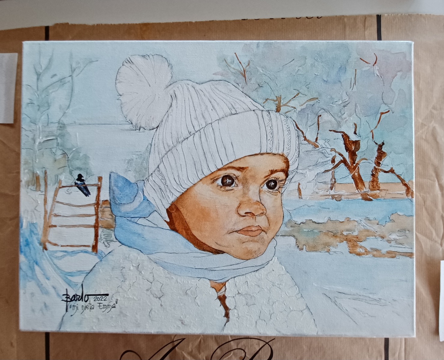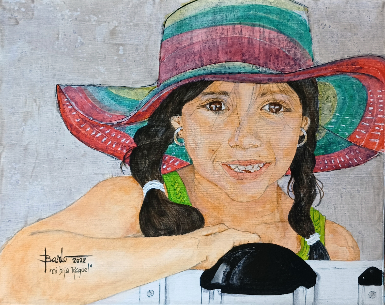Y las técnicas que utiliza son variadas y van desde el grafito, carboncillo o conté, hasta las aguadas de acrílico sobre lapiceros de color.
